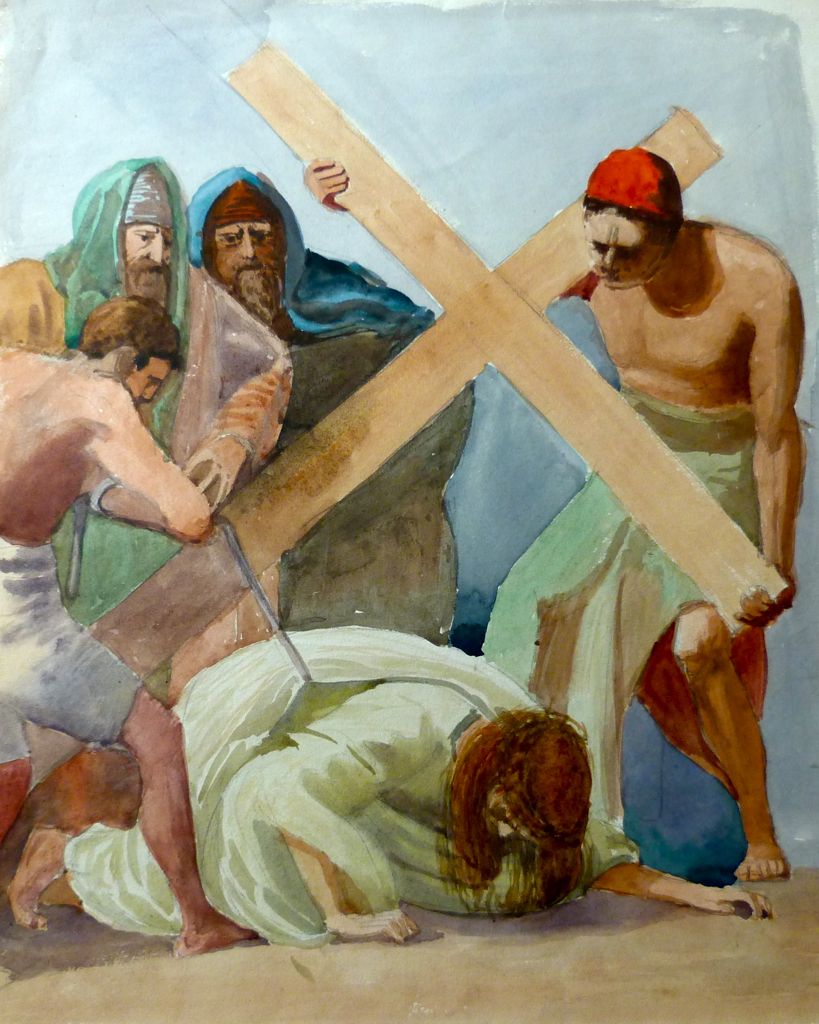 3éme station Published 11/02/2018 at 819 × 1024 in 3éme station Jésus tombe sous le bois de la croix Aquarelle, 30×40 cm