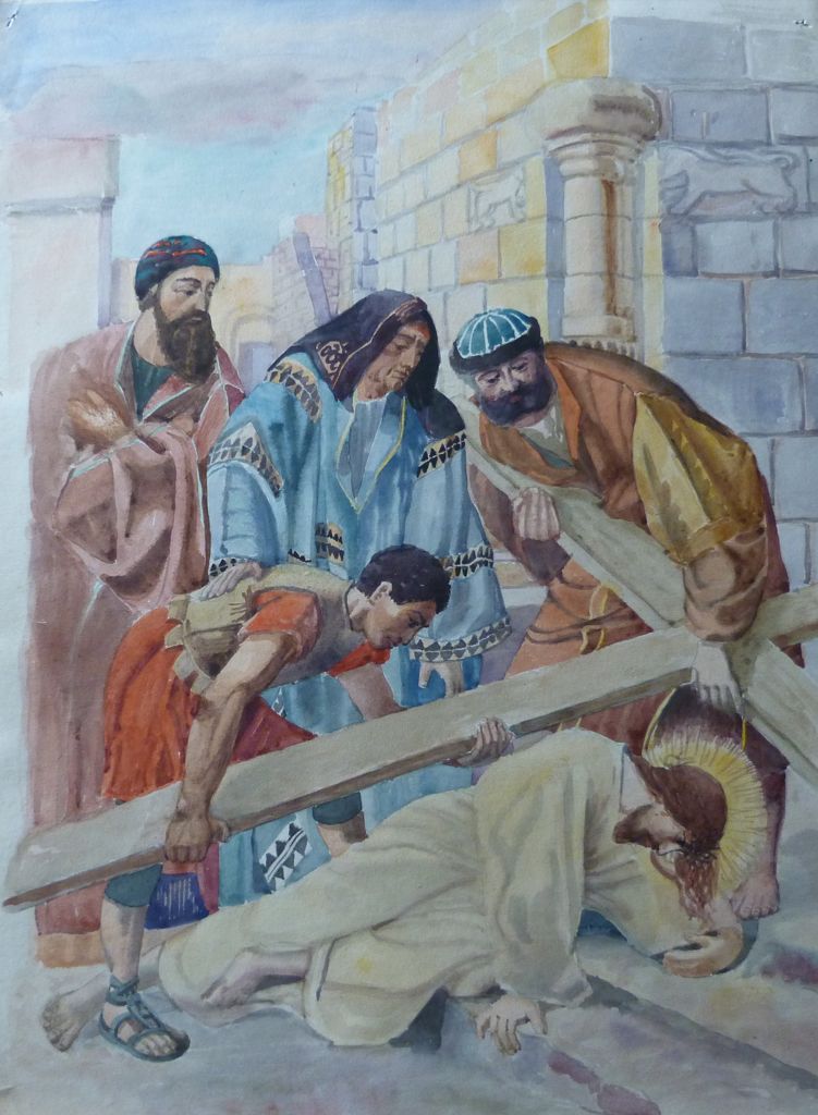 9ème station Published 11/02/2018 at 751 × 1024 in 9ème station Jésus tombe pour la 3e fois Aquarelle, 30×40 cm