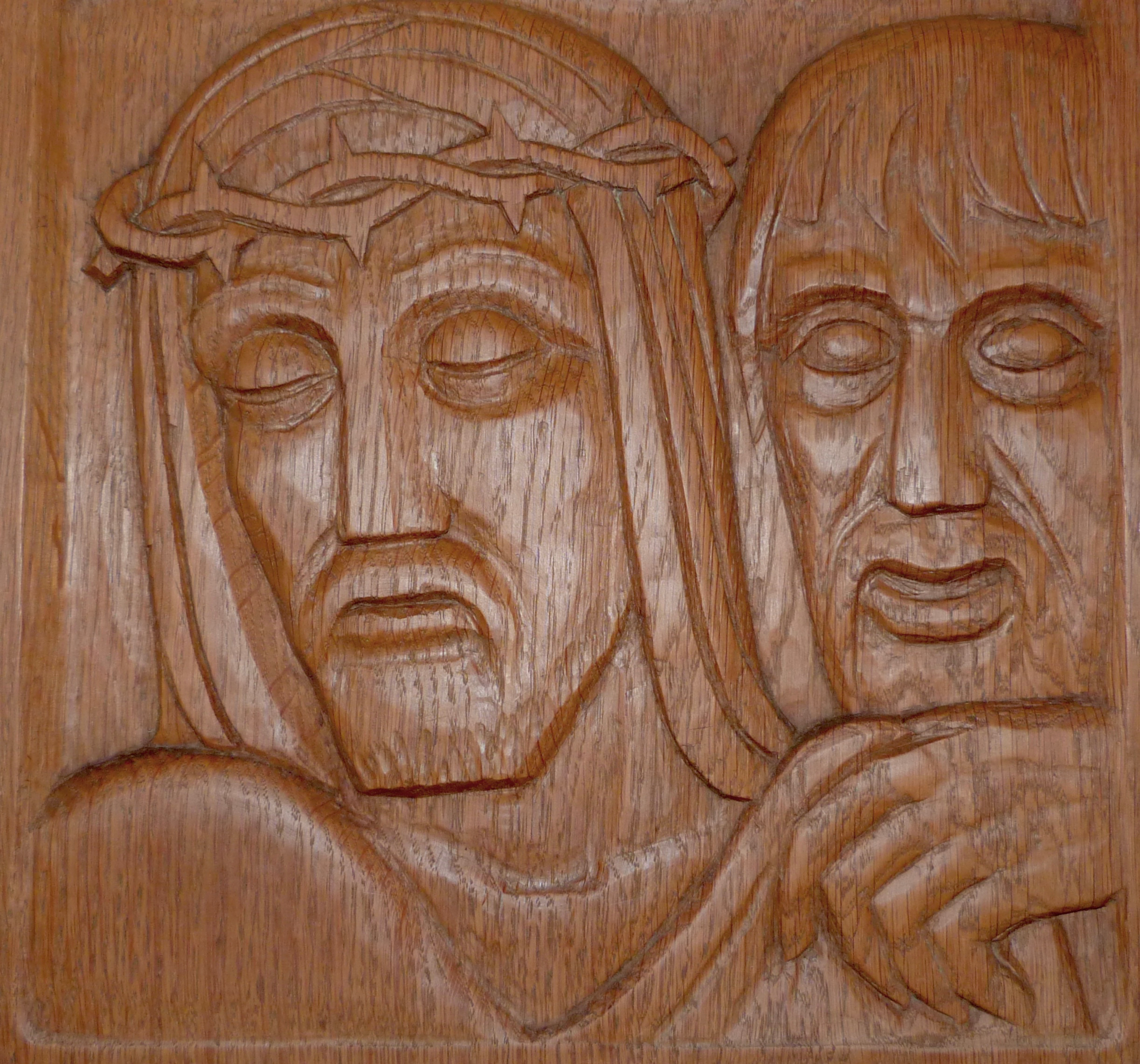 station 10 Published 05/06/2018 at 2445 × 2283 in Chemin de croix, église de Manternach Jésus est dépouillé de ses vêtements sculpture en bois 40×40 cm