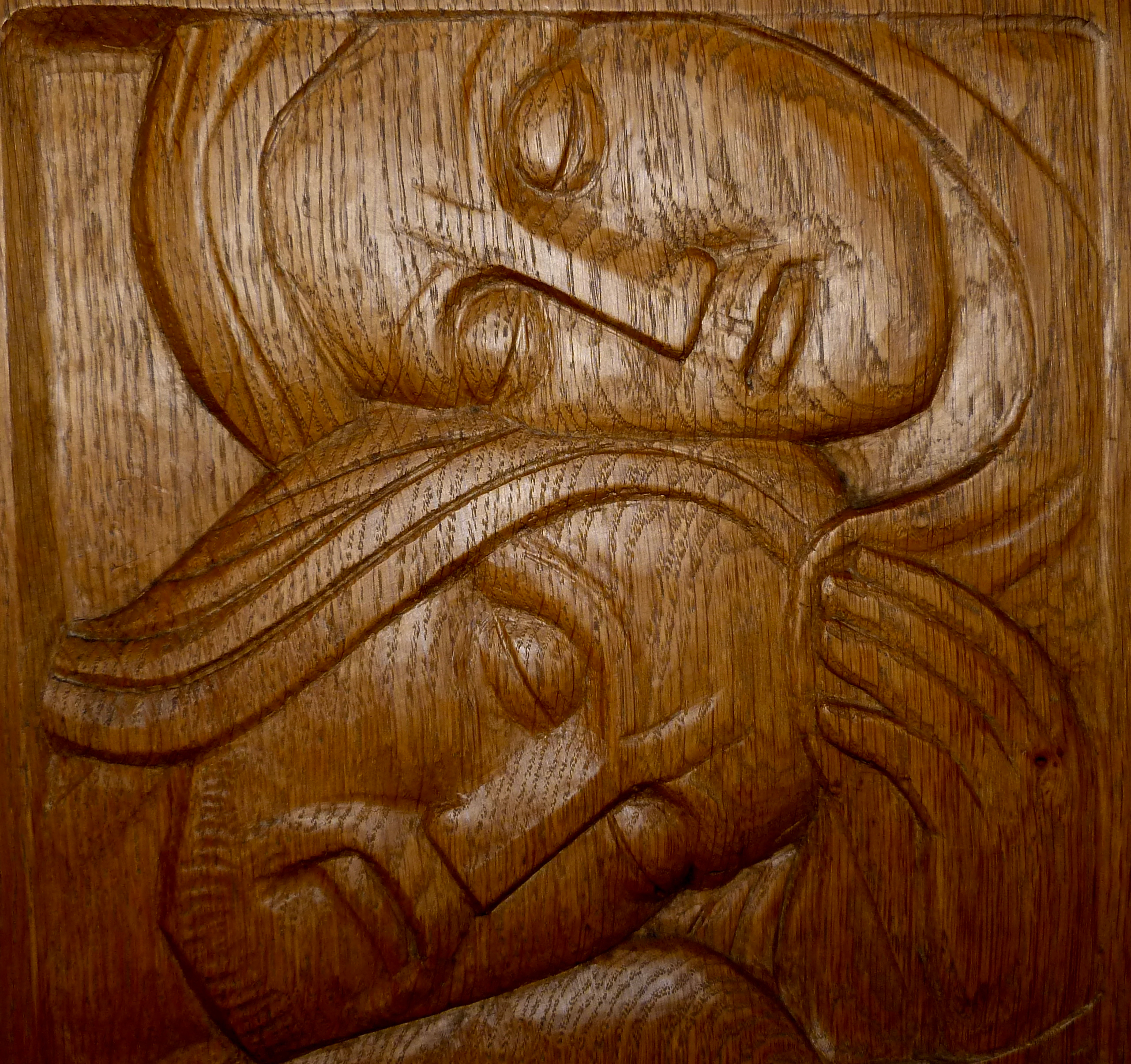 station 14 Published 05/06/2018 at 2563 × 2411 in Chemin de croix, église de Manternach Le corps de Jésus est mis au tombeau sculpture en bois 40×40 cm