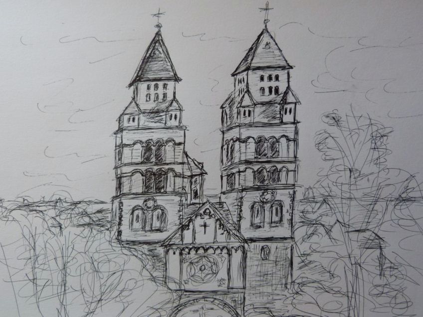 Eglise du Sacré Coeur Mayen Published 14/02/2013 at 1024 × 768 in Oeuvres diverses Eglise du Sacré Coeur Mayen (Eifel – Allemagne) stylo à bille sur papier, 29×42 cm, collection privée