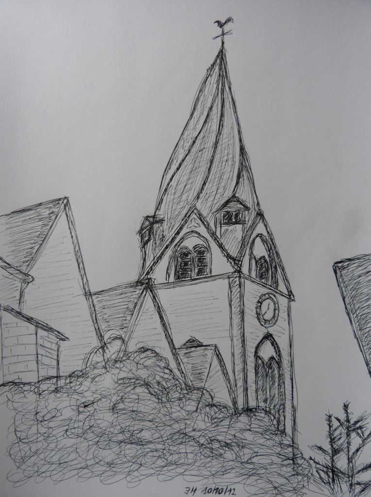 Eglise Saint Clément Mayen Published 14/02/2013 at 764 × 1024 in Oeuvres diverses Eglise Saint Clément Mayen (Eifel – Allemagne) stylo à bille sur papier, 29×42 cm, collection privée