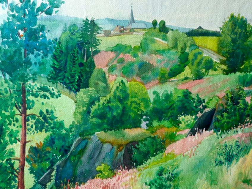 Paysage Niederwampach Published 10/02/2013 at 1024 × 768 in Chemin de croix Paysage de Niederwampach Aquarelle, 36×46 cm