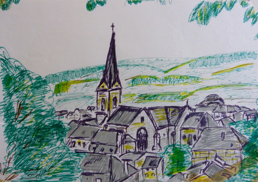 Rëmeleng (Rumelange) Published 07/03/2015 at 1024 × 724 in Rëmeleng (Rumelange) Vue sur Rumelange (Luxembourg) stylos à bille sur papier, 29 x 21 cm, mars 2015