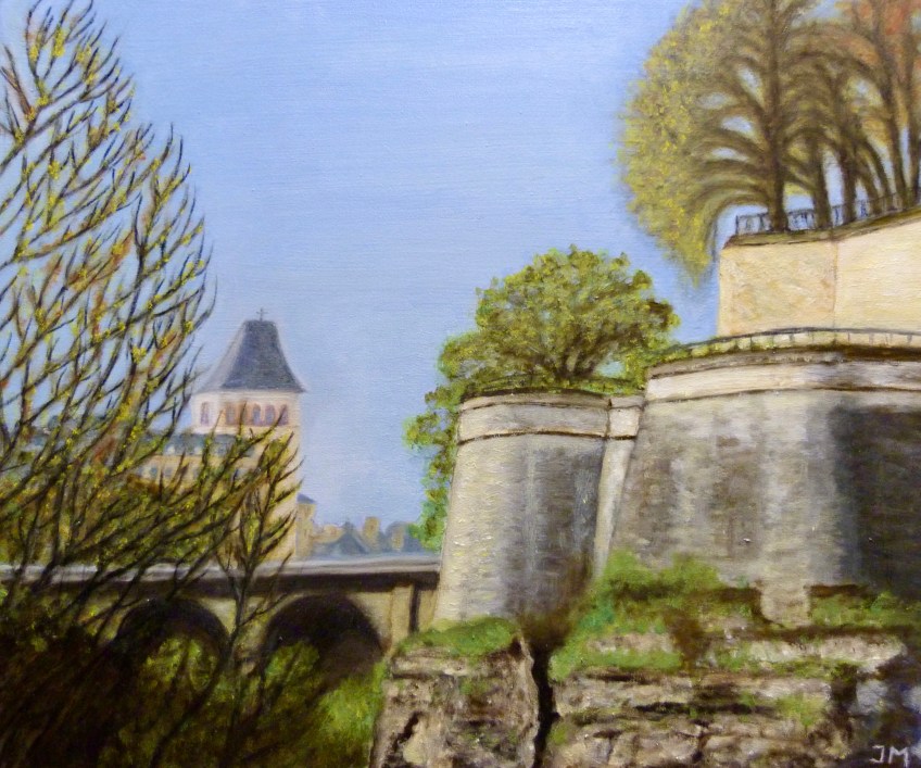 Fortifications St-Esprit Published 07/12/2022 at 3719 × 3102 in Fortifications St-Esprit Fortifications St-Esprit avec vue sur le Viaduc et l’église du Sacré-Coeur (Luxembourg) Huile sur toile, 50 x 60 cm, 11/12 2022