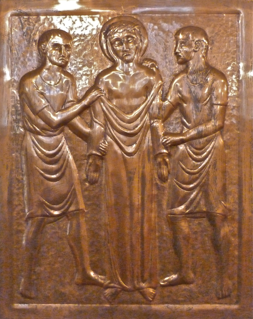 Station 10 Published 07/03/2013 at 813 × 1024 in Station 10 Jésus est dépouillé de ses vêtements cuivre travaillé sur 2 faces, 50×60 cm