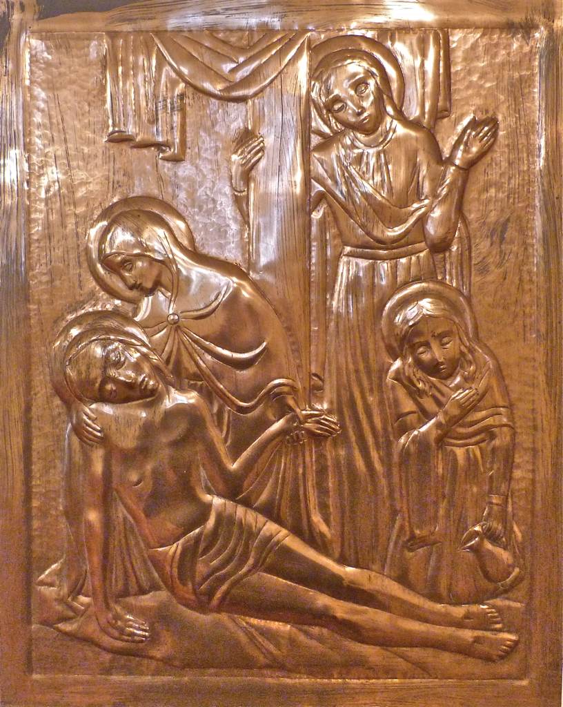Station 13 Published 07/03/2013 at 816 × 1024 in Station 13 Jésus est détaché de la croix et remis à sa mère cuivre travaillé sur 2 faces, 50×60 cm