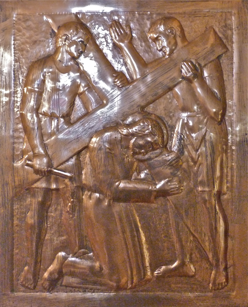 Station 7 Published 07/03/2013 at 826 × 1024 in Station 7 Jésus tombe pour la deuxième fois cuivre travaillé sur 2 faces, 50×60 cm